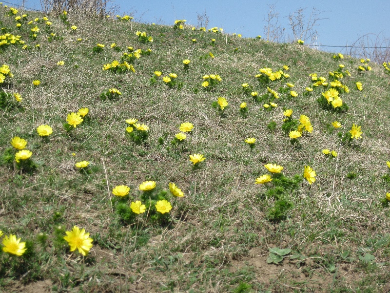 | Adonis vernalis, una de las primeras flores en sitios secos y relativamente rara. |